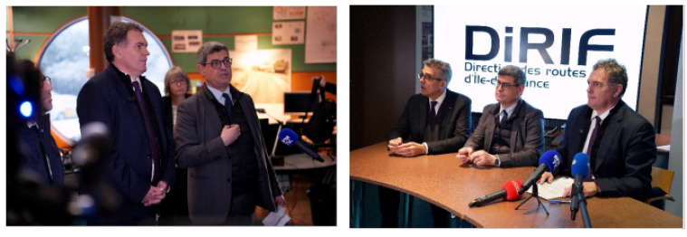 15h45 : annonce de la venue du Ministre des Transports, Philippe TABAROT, en présence du Préfet de la région Île-de-France, Marc GUILLAUME, du Préfet du Département du Val-de-Marne, Etienne STOSKOPF et du directeur des mobilités routières de la DGITM, Jean-Renaud GELY, au PC de crise DiRIF de Créteil l’Echat, pour un point de situation avec les équipes mobilisées et une conférence de presse en direct de la salle C sur BFMTV, CNEWS.